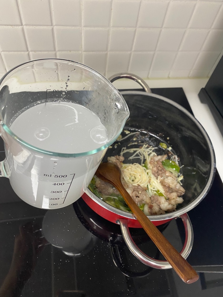 저는 좀 더 맛있게 하기 위해 쌀뜬물을 넣어보았어요!